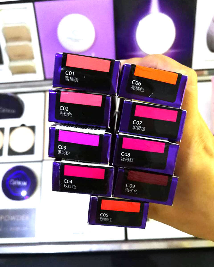C01 pink C02 bright pink C03 orange C04 rose red C06 naked coffee C01 peach powder C02 apricot pink C03 barbie powder C04 rose red C05 coral red C06 bright
