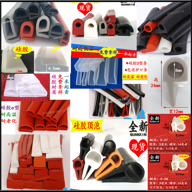 E-type sealing strip Silicone foam oven high temperature rubber strip U-type with foam with motor cabinet sealing strip square strip