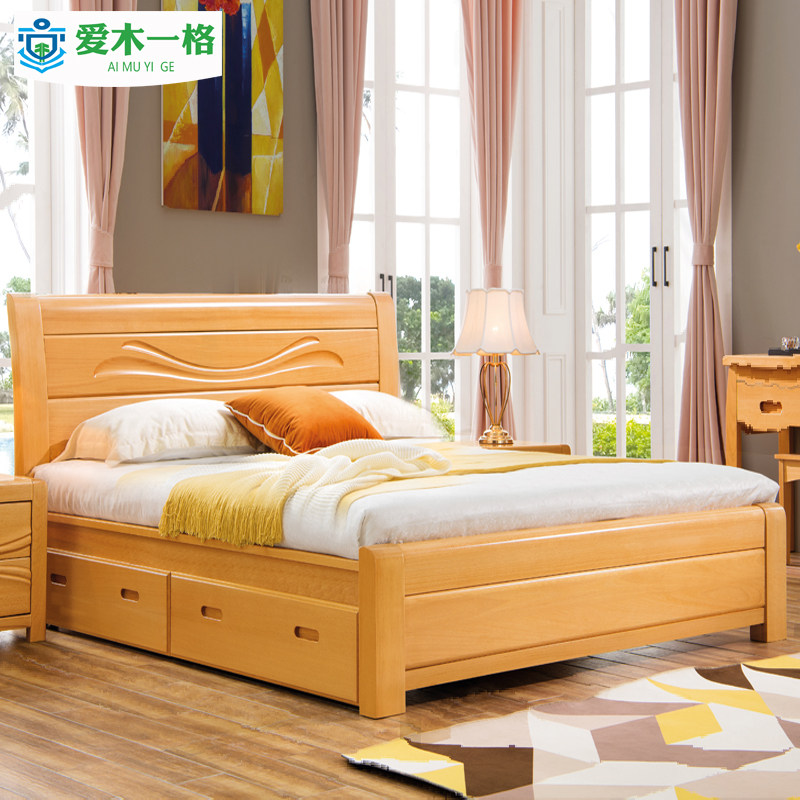 Full Solid Wood Bed Beech Wood Bed 1 8 m Double Bed Brief Modern Chinese Style 1 5 m Drawer Pneumatic High Case Containing Bed