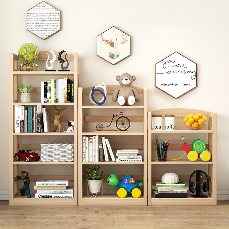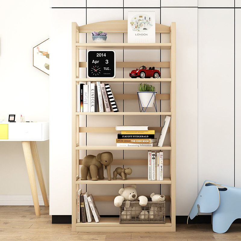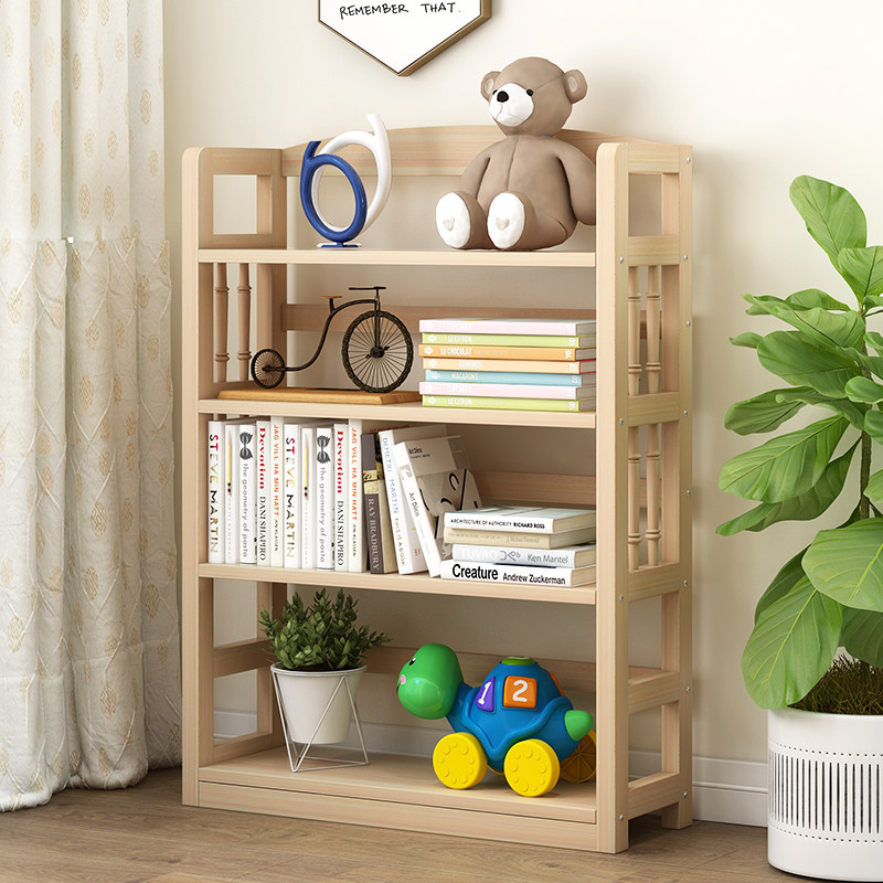 Bookshelf Solid wood combination floor shelf Simple picture book shelf Simple modern paint-free pine student children's bookcase