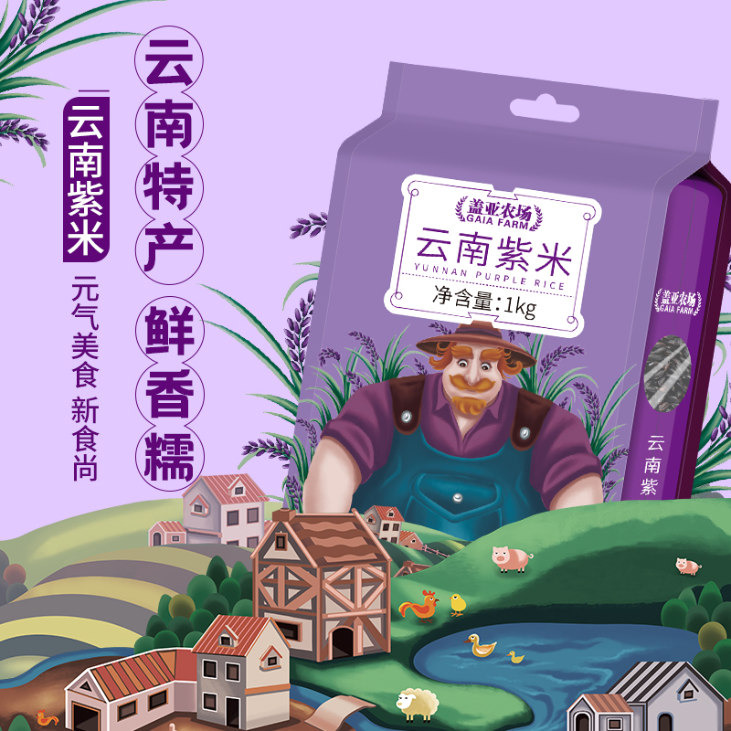 Gaia Farm Yunnan purple rice 1kg miscellaneous grains grains new rice Mojiang purple glutinous rice blood black glutinous rice mass rice