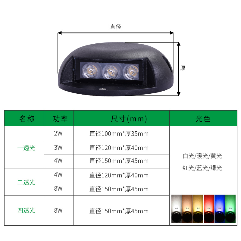 Quad Transmission 8W (Red Yellow Blue Green) 150mm One Transmission 4W (White Light Warm Light) 150mm Four Transmission 8W (White Light Warm Light) 150mm One Transmission 4W (Red