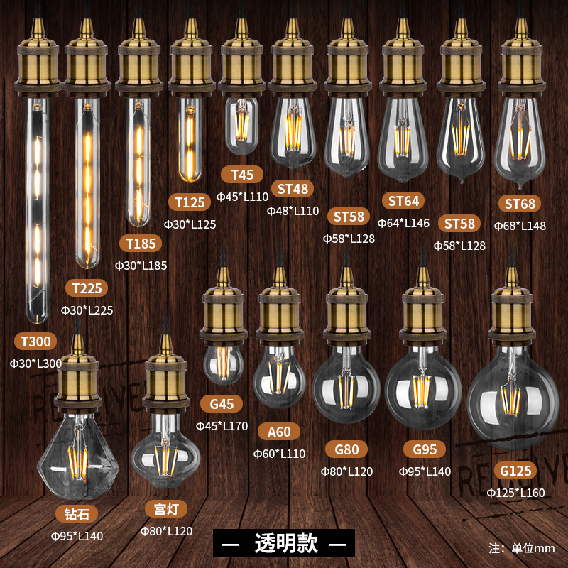 ST64 Transparent ST58 Transparent ST48 Transparent G45 Transparent A60 Transparent G80 Transparent G95 Transparent Diamond Transparent Palace lamp Transparent G125 Transparent