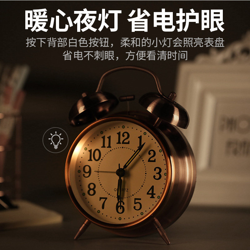 European-style creative student alarm clock for male and female students Silent bed head luminous snooze watch Ultra-loud sound mechanical alarm