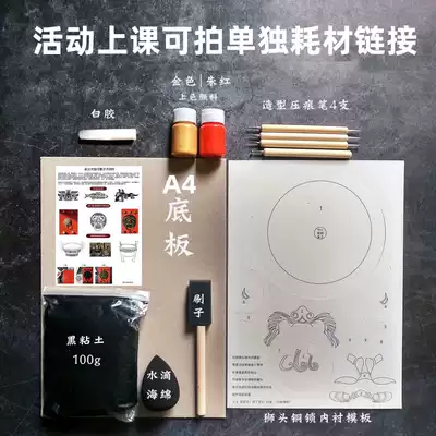 Black clay 500g Vermilion pigment 100ml metal gold pigment 25g Lion head copper lock lining template A4 environmental protection paper bottom plate water droplets coloring sponge sponge small brush Manual white glue indentation pen