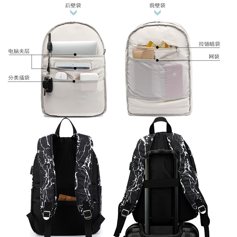 European and American casual printing laptop backpack large capacity light student school bag waterproof shockproof pluggable trolley case female suitable for Apple 13 Lenovo 14 Huawei 15 Xiaomi 16 inches