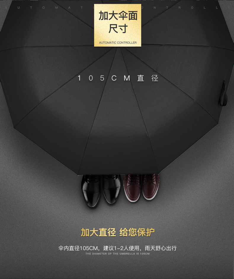 Rainlands Automatic Umbrella One-click Open Male Big Baro Umbrella Cross Business Students Fold and Enhance Women