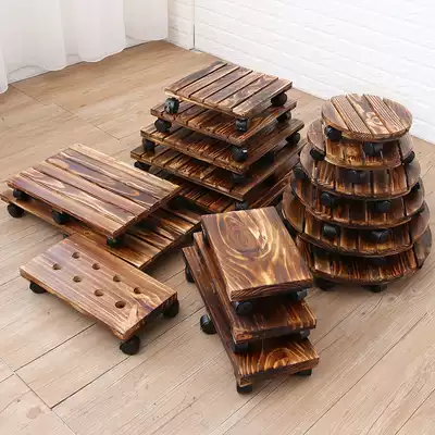 Flower pot tray base roller universal wheel solid wood pulley moving wooden round floor-standing bonsai living room household