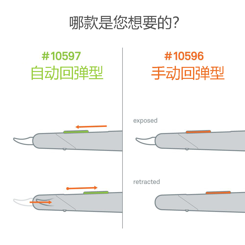 10596 (manual rebound safety knife) 10597 (automatic rebound safety knife) 10536 (with round arc scissors) 4 pieces 10537 (with sharp scissors)