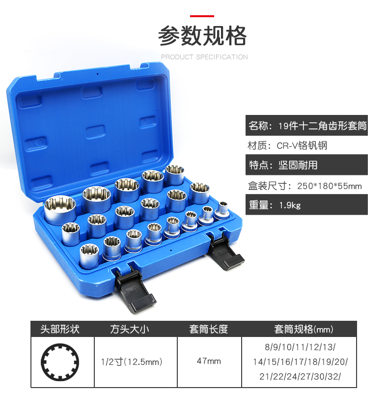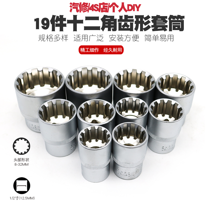 19 pieces of 12 sets of 12-angle toothed sleeves