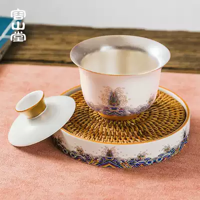 Rongshantang gilt silver enamel color cover bowl pot host Cup Tea Cup kung fu tea set New year gift