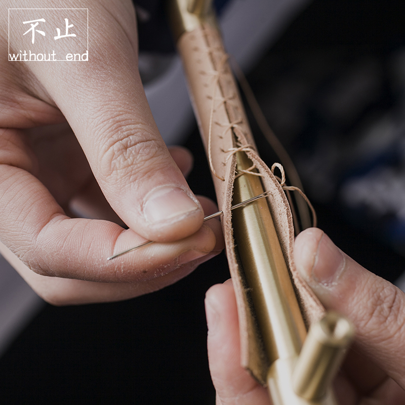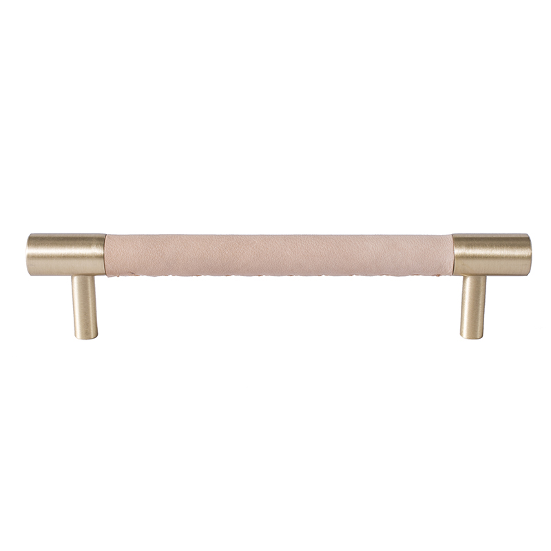 Brass long handle Cabinet door drawer overall cabinet double hole handle Nordic simple original design handmade leather handle