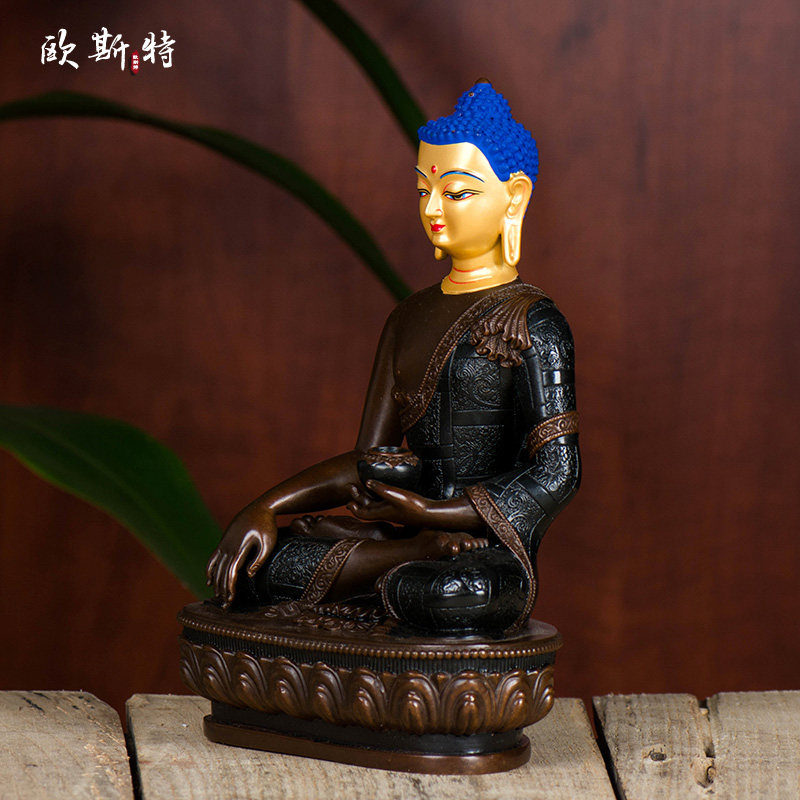 Oster Sakyamuni bronze statue bronze antique Tibetan household Buddha supplies Sakyamuni Buddha Buddha three treasures bronze statue
