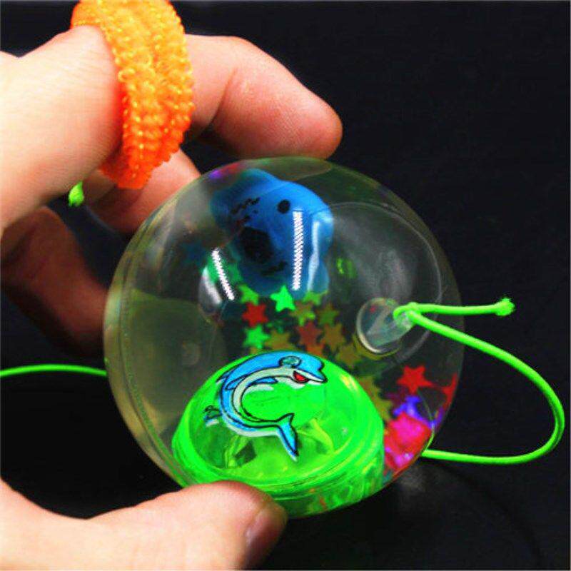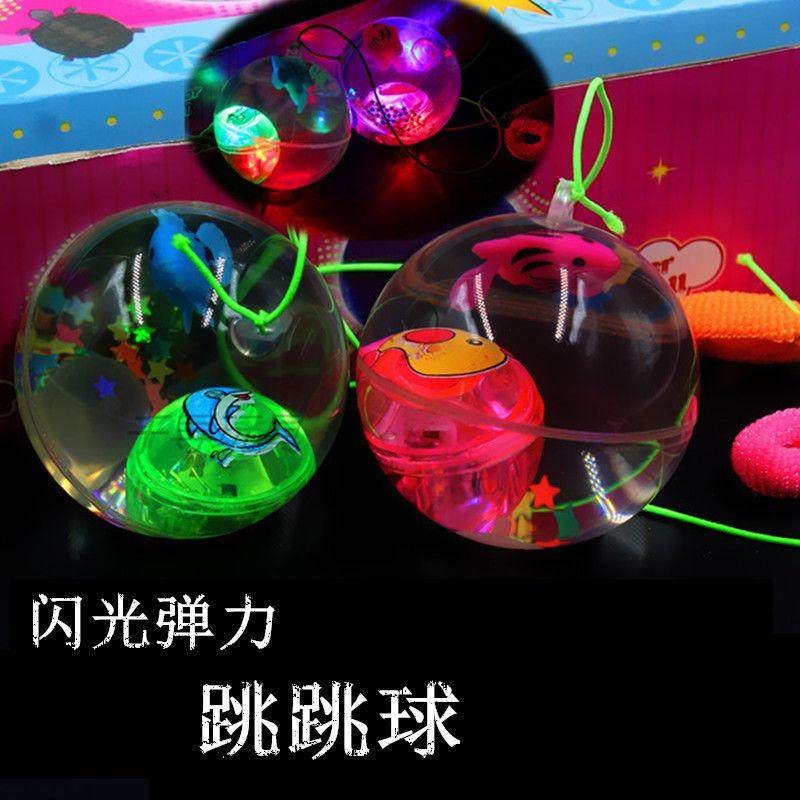Seven-coloured jumping ball elastic water crystal ball luminous toy with pull rope crystal jump ball children flashy toy jump ball
