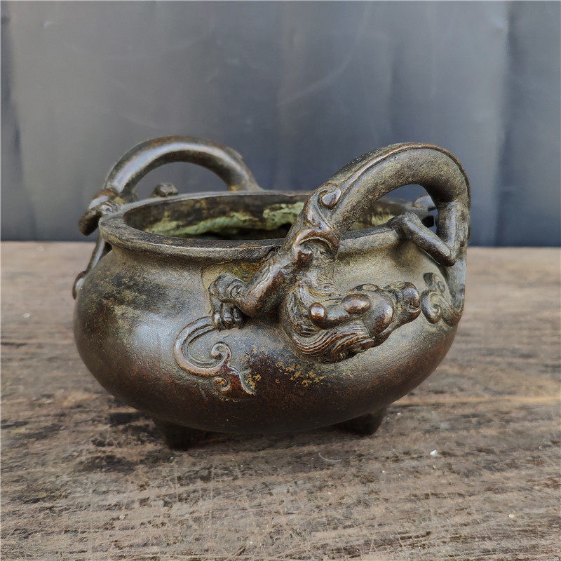 Antique ancient playing hot selling collection brass Dragon children's three-foot case head incense stove styling ancient and simple workmanship delicacy