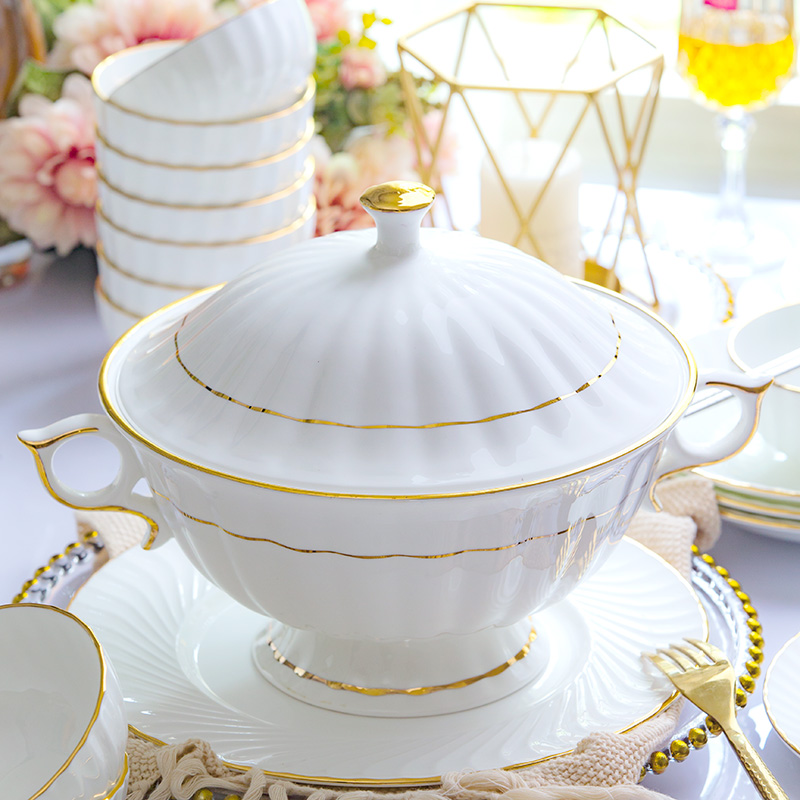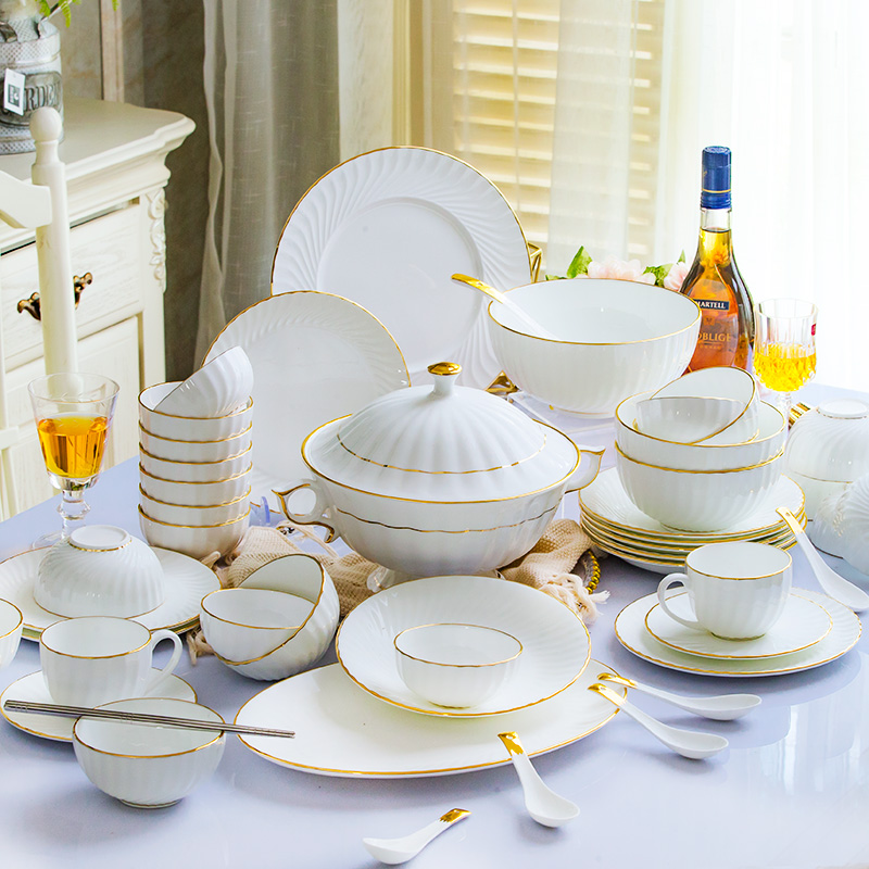 European excellent bone China tableware set Creative Jingdezhen bowls and plates Household dishes set bowls, spoons and chopsticks