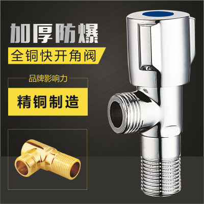 All-copper thickened angle valve hot and cold water triangle valve toilet household straight-through valve eight-character water stop valve switch valve plumbing