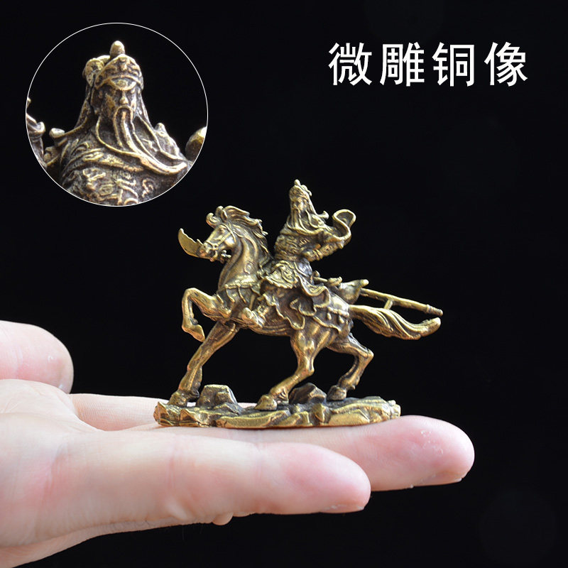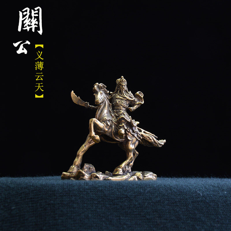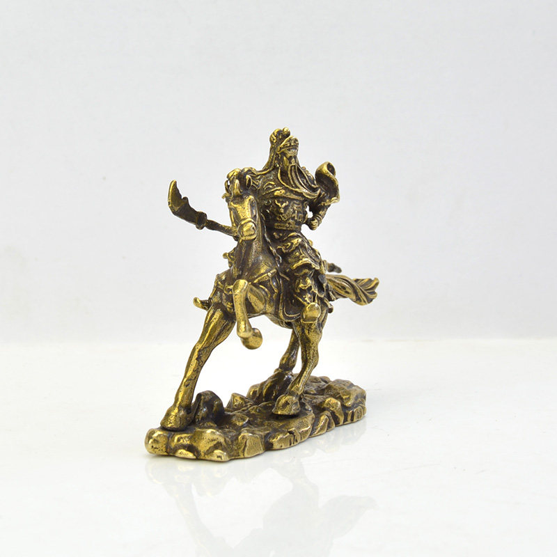 Antique antique copper widget kung copper statue riding the statue of the statue of the fine-carved copper copper