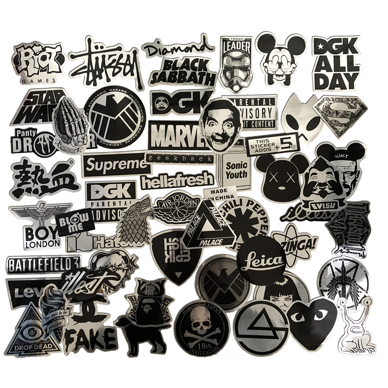 50 A-style tide brand imitation metal silver stickers waterproof suitcase stickers skateboard audio waterproof car stickers