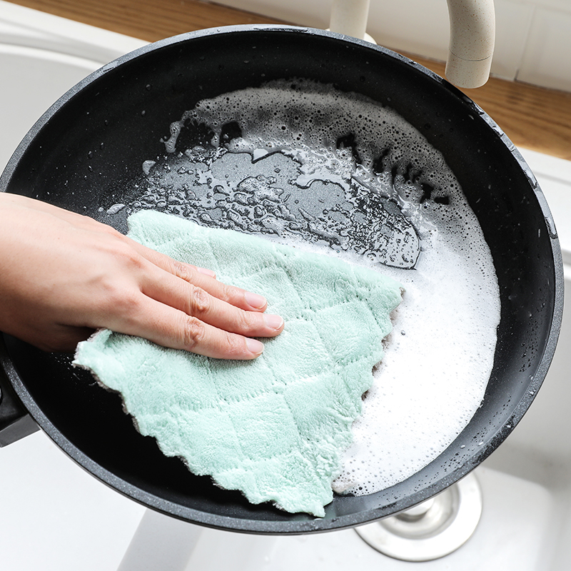 Household non-stick kitchen rag washcloth thickened to absorb water without shedding hair housework cleaning artifact to oil washcloth