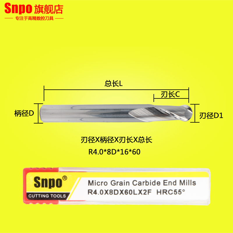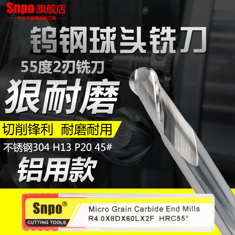 SNPO55 degree alloy milling cutter ball knife tungsten steel ball head knife processing center tungsten steel knife spherical milling cutter internal R aluminium use