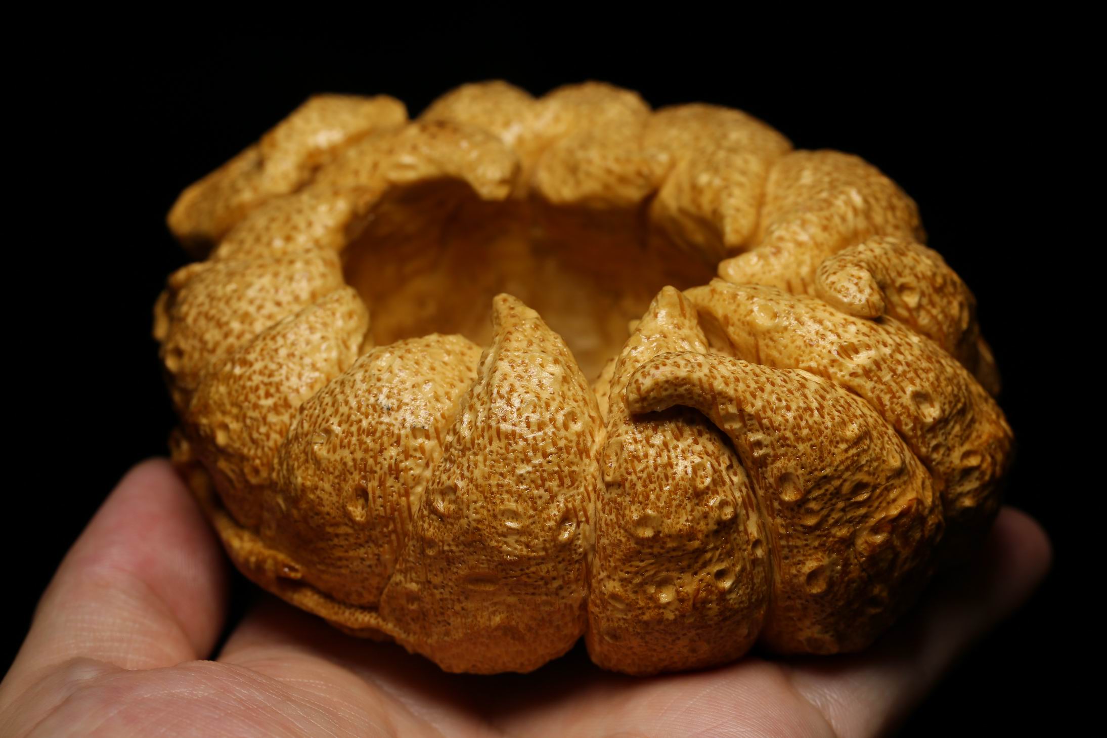 Bamboo root bamboo carving bamboo root carving famous new handle ornament lotus leaf pen wash