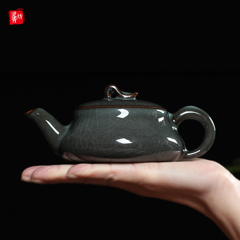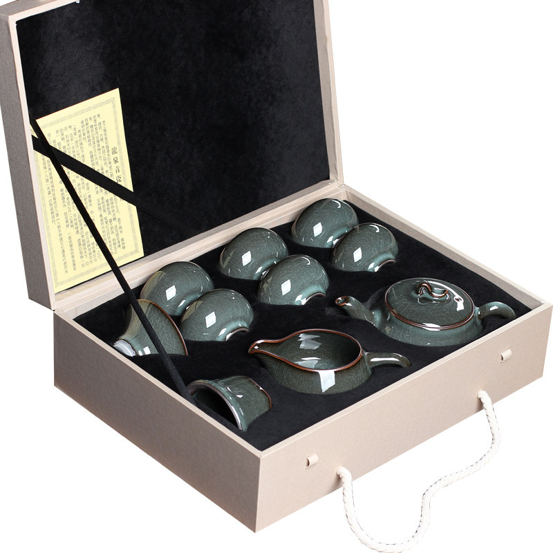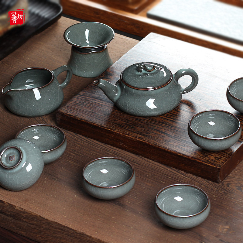 Longquan celadon set of high-end kung fu tea set handmade Koyao iron tire ice crack teapot tea cup set household ceramics