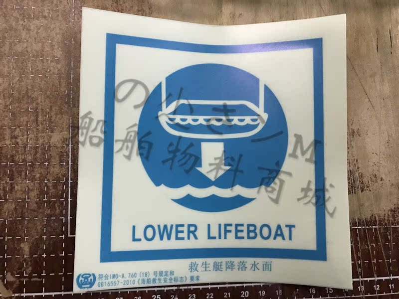 Marine IMO fluorescent label IMO ID 335103 lifeboat landing surface LOWER LIFEBOAT
