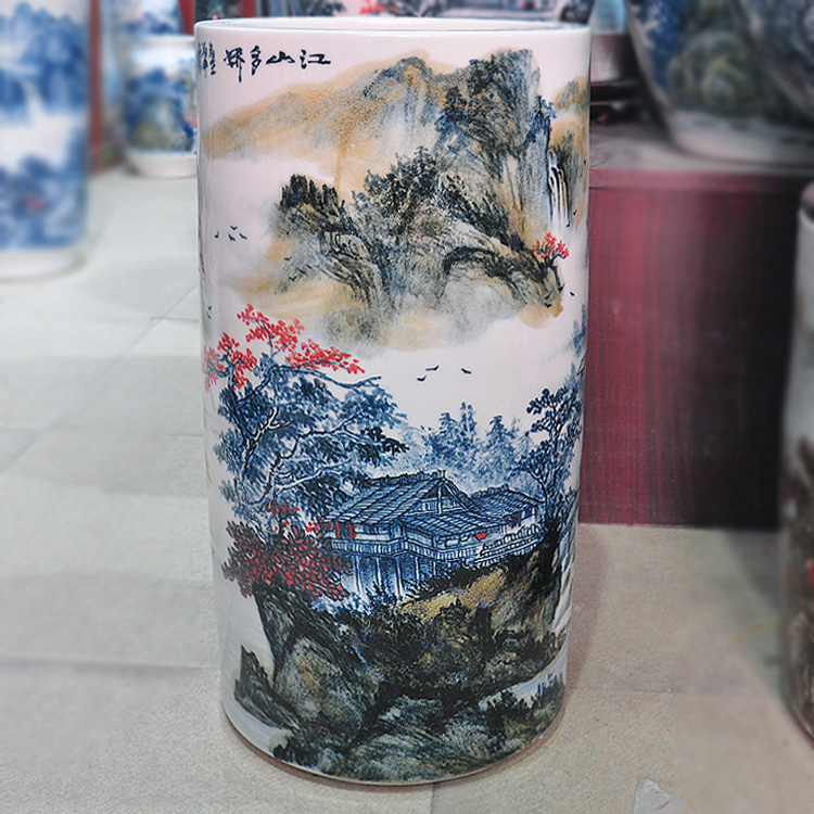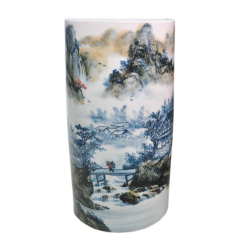 Master Hand painted with certificate Jingdezhen Ceramic Calligraphy And Painting Barrel Scroll Cylinder Straight Barrel Book House Character Painting Containing Process Gift Hem