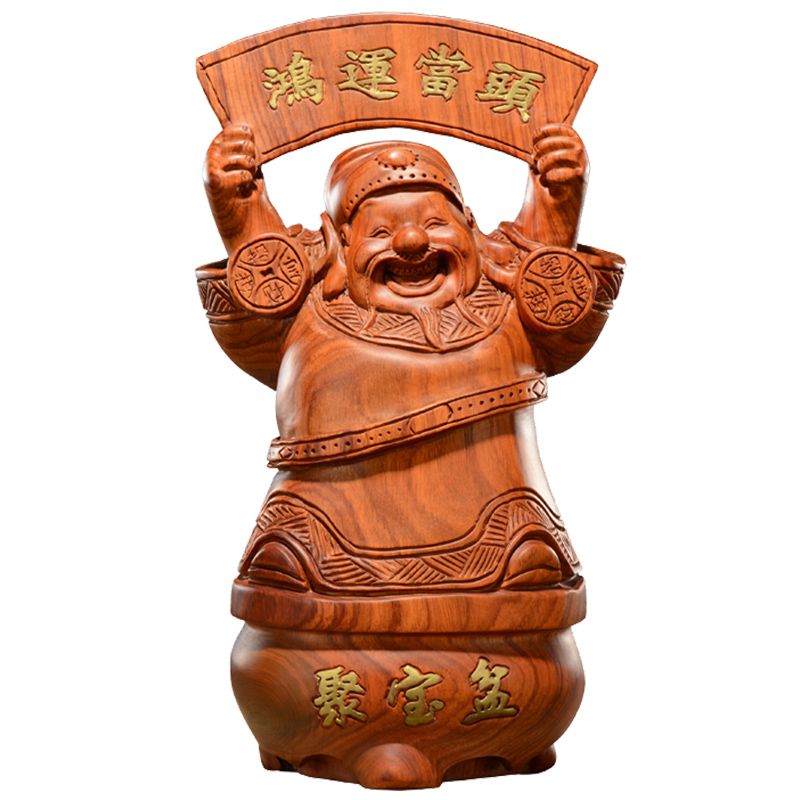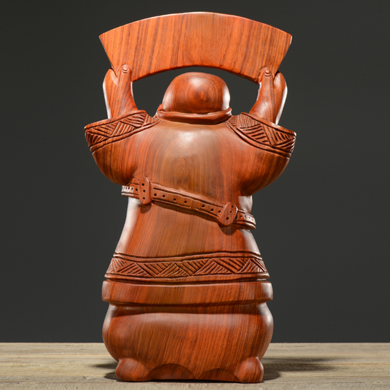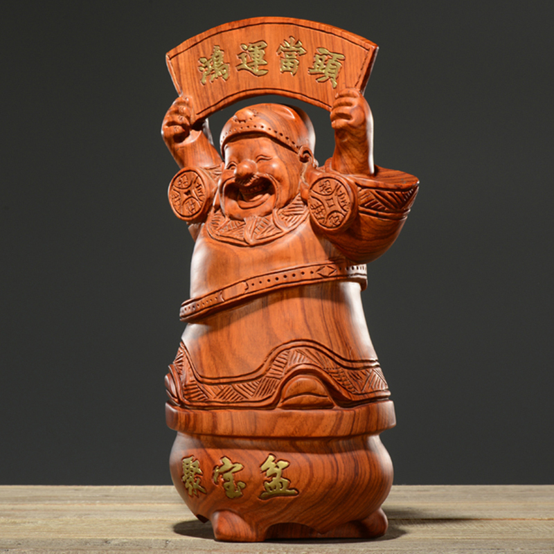 Huanghuali wood carving Wencai God Buddha statue ornament solid wood living room shop home offering mahogany carving craft gift ornaments