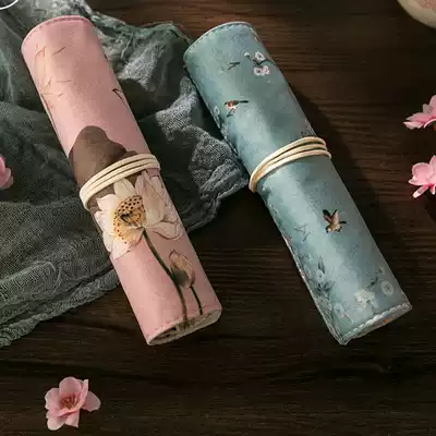 Cheng teacher court cultural and creative elements makeup brush storage bag Vintage wind roller curtain pen bag Creative small gift gift