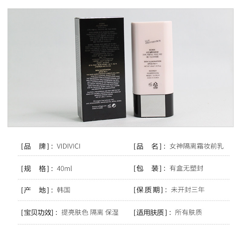 South Korea's vidivici goddess isolation cream moisturizing hydrating primer long-lasting makeup pre-makeup moisturizer 40ml