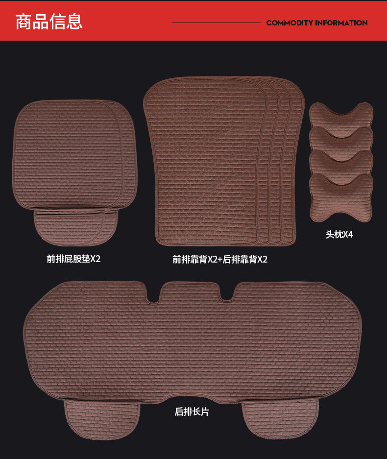 Small waist car cushion four seasons universal linen summer seat cushion Half-wrapped car cushion seat cushion single piece breathable thin section