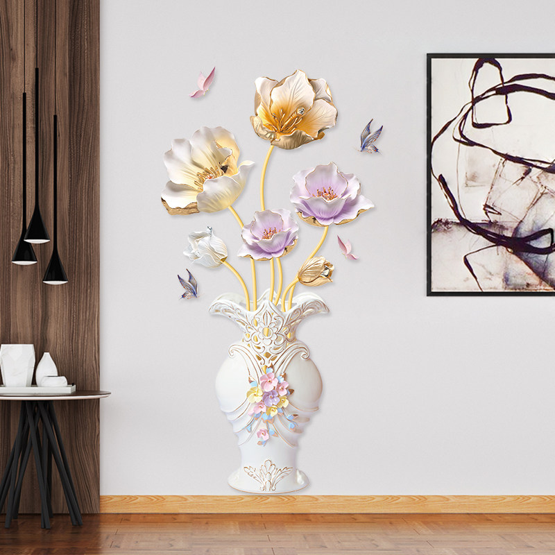 Tulip Vases Xuanguan 3D Solid Wall Appliqua Sticker Self-Adhesive Wallpaper Wall Decoration Bedroom Cozy Wallpaper