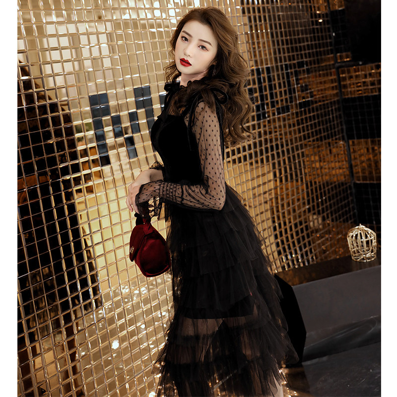 Black little man evening dress female 2021 new banquet temperament noble can usually wear a dress high-end annual meeting