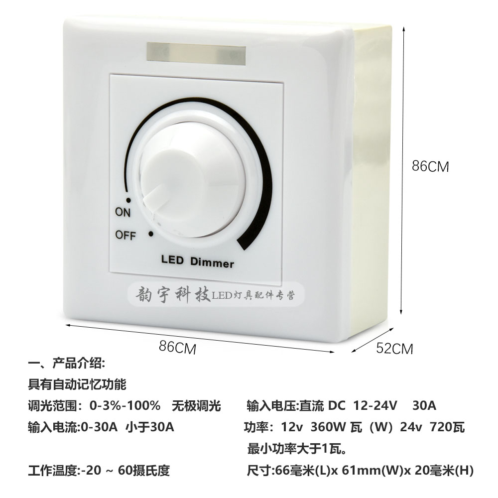 LED soft and hard light bar light strip with stepless dimmer 86 type panel brightness adjustment knob switch 12V 24V30A