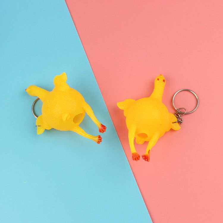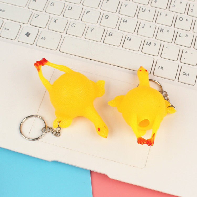 Under the layer chicken creative funny hair chicken key chain Whole person pinch music decompression funny small gift gift push