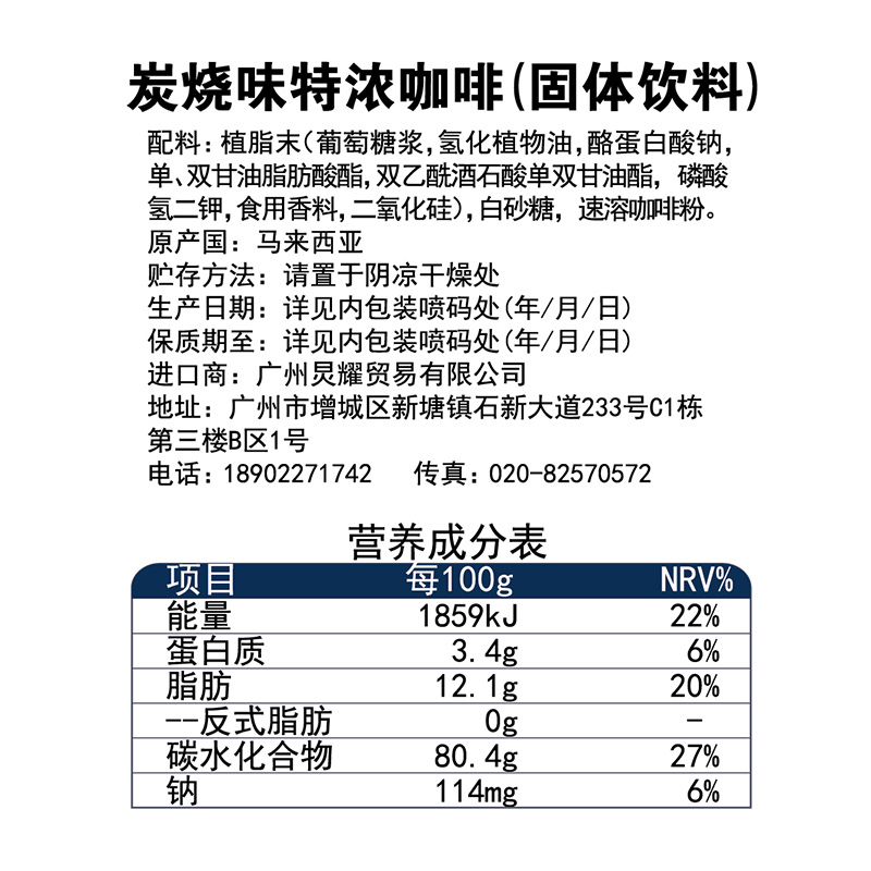 Malaysia imported famous Xin 1 2 charcoal burnt coffee flavor three-in-one instant coffee powder 30 bags