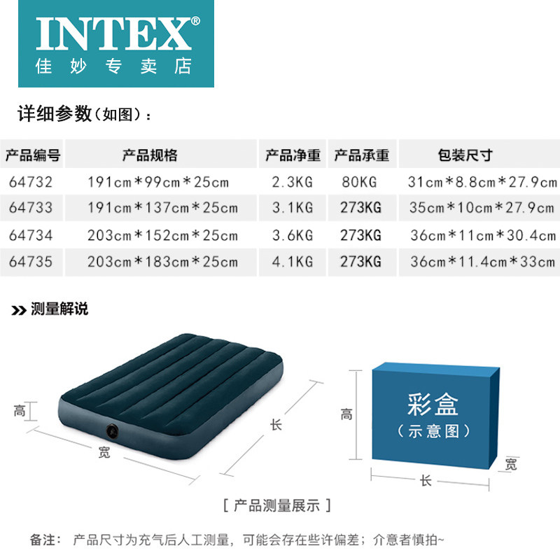 INTEX inflatable mattress Household double air cushion Single thickened outdoor portable inflatable folding bed