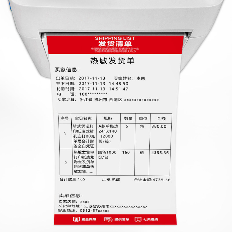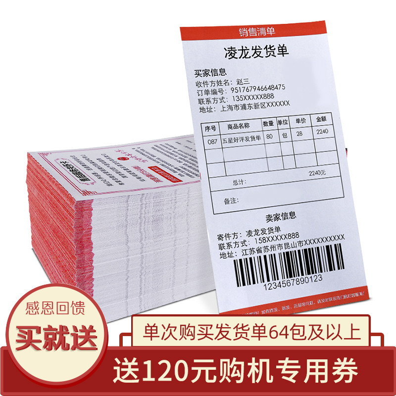 Linglong thermal invoice 90g thickened Taobao e-commerce 106x203mm Delivery shipping order distribution thermal paper Sales list Copy paper Custom invoice Thermal printer special paper