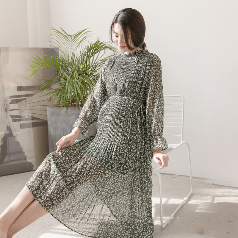 Pregnant women spring dress fashion 2019 new loose Korean version spicy mom belly pleated chiffon skirt pregnant woman skirt