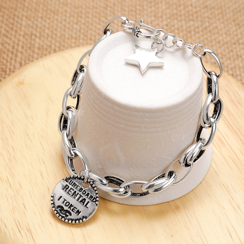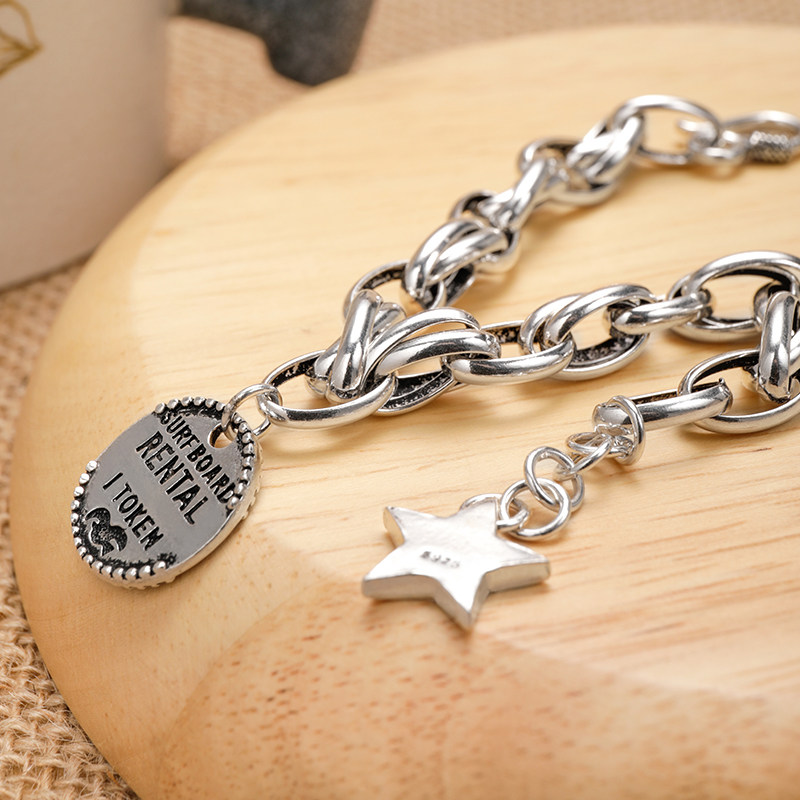 s925 pure silver hand condensed ancient Thai silver round plate letters pentagram male and female South Korean fashion 100 hitch stars silver decoration