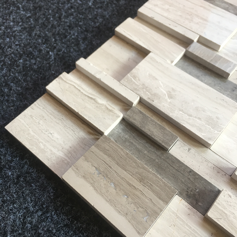 Grey Wood Grain Mosaic TV Sofa Background Wall Natural Marble Image Wall Sticker Tiles