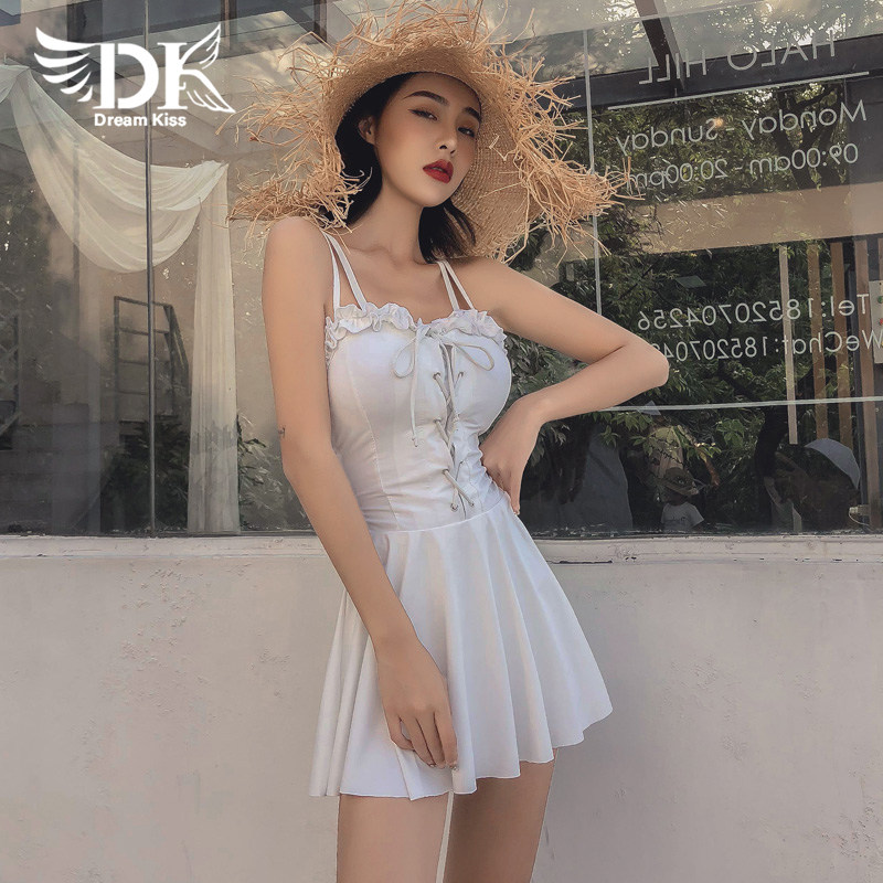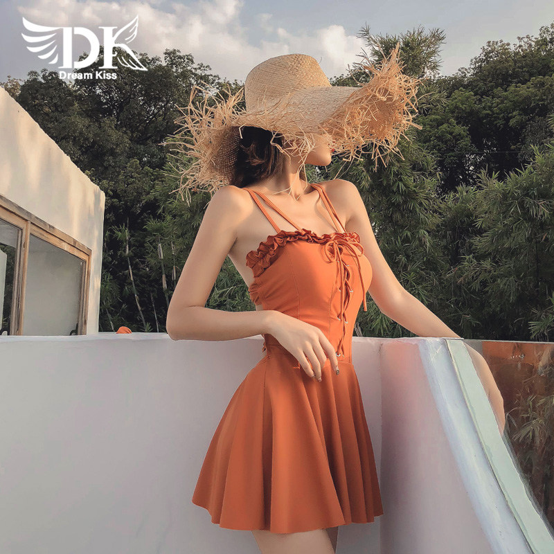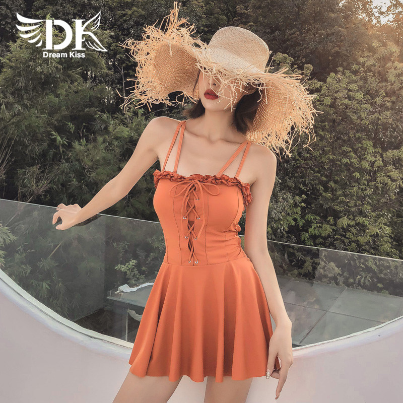 Dk small fresh breast hot spring swimsuit women 2021 new dress style back conservative belly swimsuit women