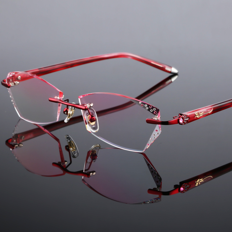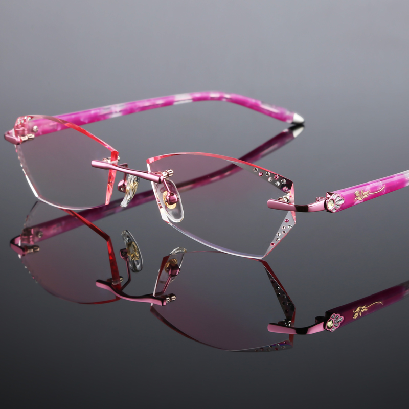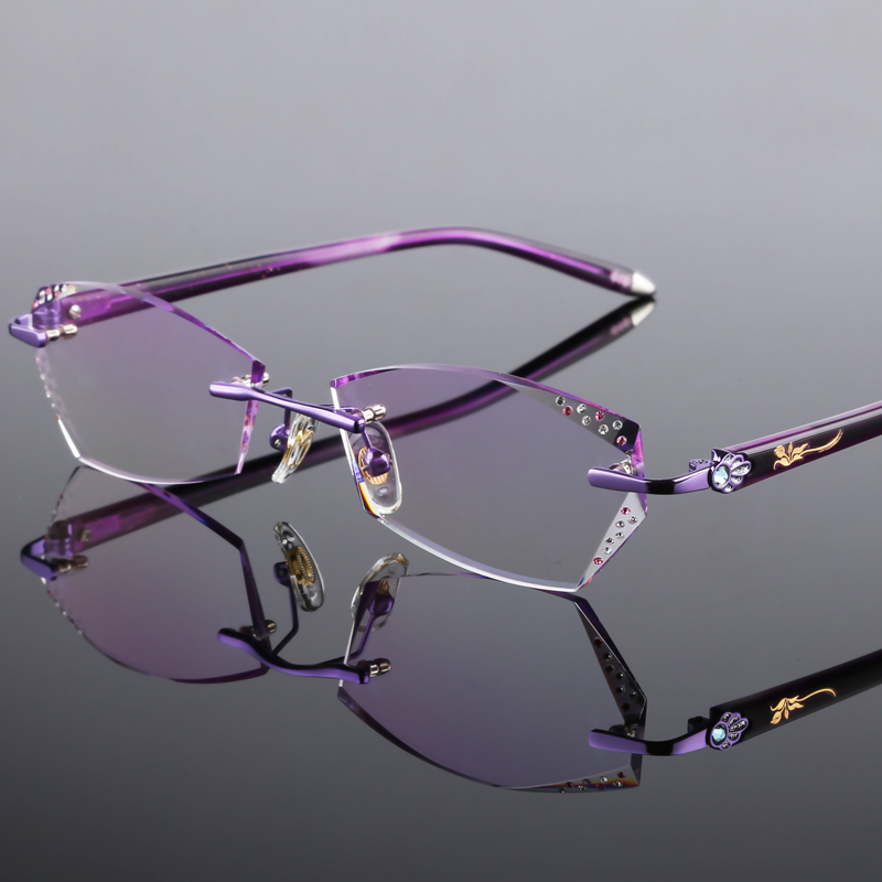 With finished myopia glasses frame women's diamond cut glasses ultra-light rimless glasses frame discoloration glasses with degree - Taobao