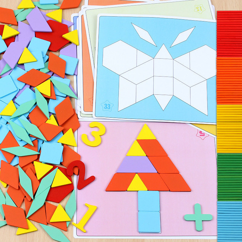 Kindergarten Children Wooden Creative Geometric Shapes Smart Plate Jigsaw Puzzle Puzzle Toys Color Graphic Cognition Early Education