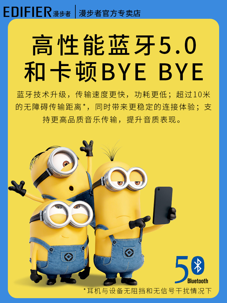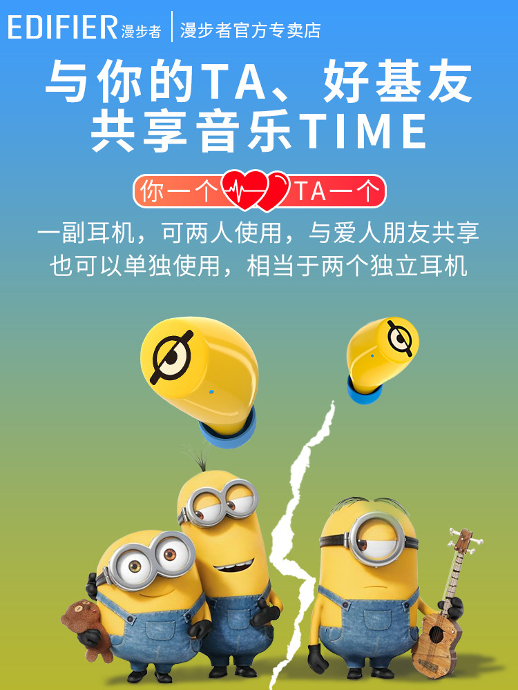 Edifier Edifier W3 bluetooth headset minion wireless headset cute girls in-ear true wireless sports bluetooth 5 0 binaural universal male and female friends earplugs birthday gift