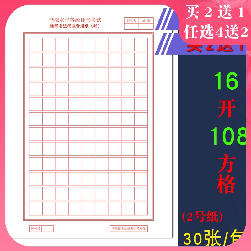 70 grid practice paper Over the years, Jiangsu Province 123 grade examination hard pen calligraphy competition special paper works paper primary school students square paper pen practice paper 16K30 sheets