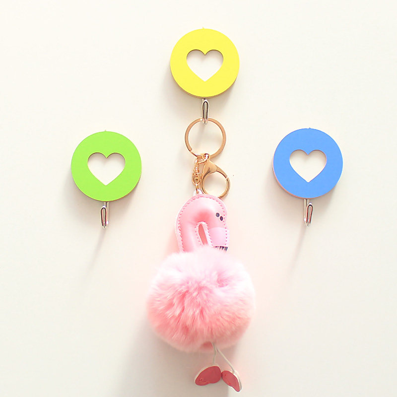Teenage Girl Hearts Hook Cute Cartoon Creative Pink Home Stainless Steel Kitchen Powerful Adhesive Free of perforated adhesive hooks