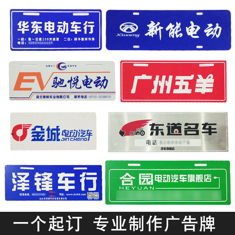 Customized car 4S store new car advertising plate PVC plastic aluminum used license plate gold and silver drawing UV custom license plate
